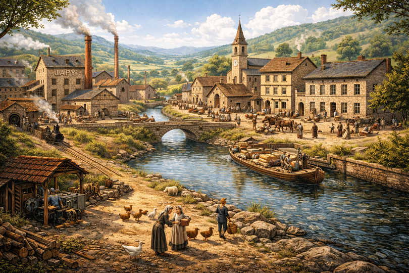 À la fin du XIXe siècle, la population atteint près de 2 000 habitants, répartis entre agriculture et industrie, témoignant d’un équilibre entre traditions rurales et modernité industrielle.