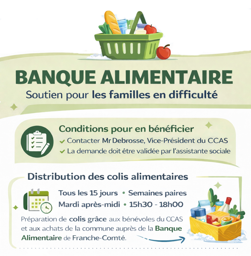 À Fesches-le-Châtel, cette action est portée par le CCAS (Centre Communal d’Action Sociale) et repose sur l’engagement de bénévoles. Les denrées alimentaires sont achetées par la commune auprès de la Banque Alimentaire de Franche-Comté, puis redistribuées sous forme de colis alimentaires.
